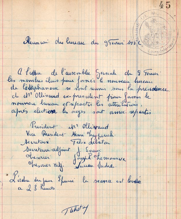 Réunion du Bureau du 9 février 1952