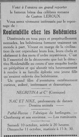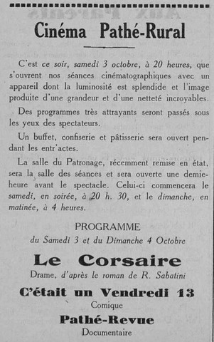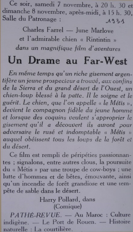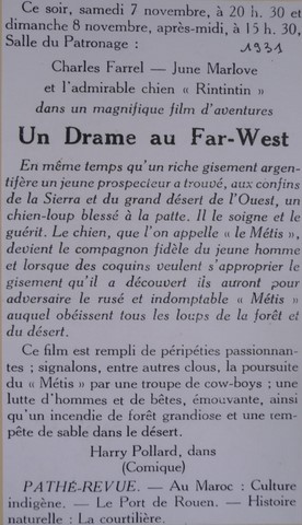 6 octobre 1929, une heure et demie de bon cinéma pour vingt sous.. (Extrait du Petit Messager)